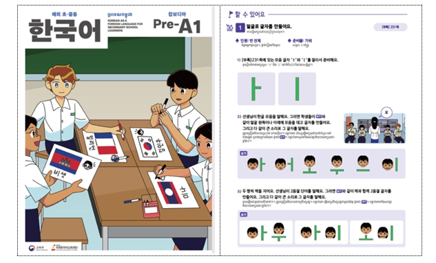 교육부는 캄보디아 현지 교원 양성 과정을 지원하는 한편, 캄보디아 교육청소년체육부의 적극적인 요청과 현지 교육 여건을 고려해서 2024년부터 크메르어가 병기된 캄보디아 맞춤형 한국어교재를 개발해 보급하고 있다.