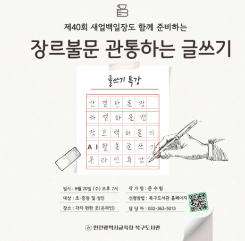 ▲ 인천광역시교육청북구· 계양도서관, 제40회 새얼백일장 대비 글쓰기 특강 운영 |