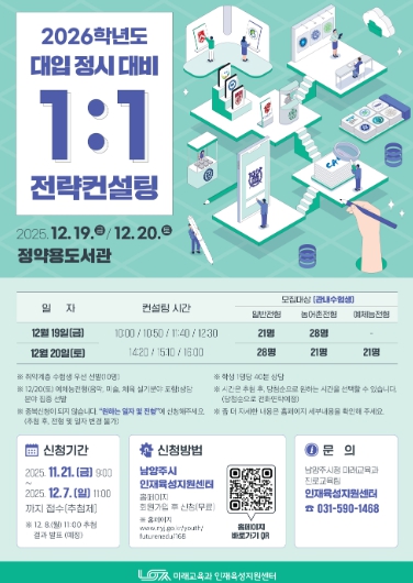[뉴스노크=김인호 기자] 남양주시는 11월 21일부터 12월 7일까지 ‘2026학년도 대입 정시 대비 1:1 전략컨설팅’에 참여할 관내 수험생을 모집한다.