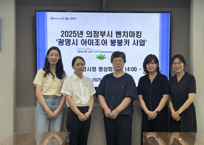 ▲ 지난 28일 의정부시 교통기획팀이 광명시 ‘아이조아 붕붕카’ 사업의 추진 과정과 성과를 공유받기 위해 광명시를 방문해 기념사진을 촬영하고 있다. |