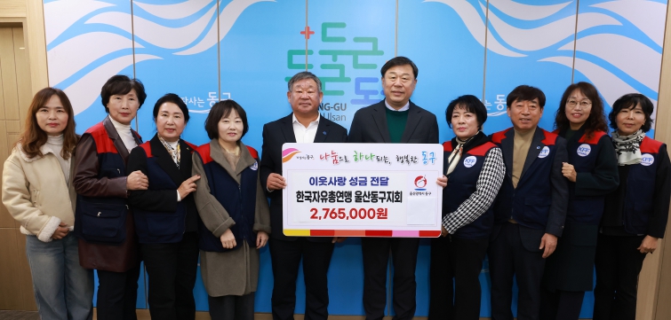 [뉴스노크=김인호 기자] 한국자유총연맹 울산동구지회(회장 이병태)는 11월 24일 오전 11시 울산 동구청을 방문해 이웃돕기 성금 276만 5천 원을 전달했다.