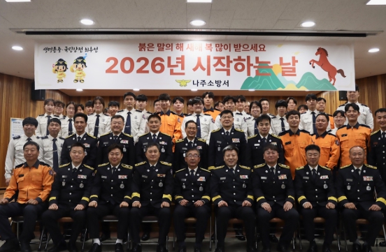 [뉴스노크=김인호 기자] 나주소방서는 2일 2026년 새해를 맞아 시무식 행사를 개최하고 한 해 동안의 각오를 다지며 지역 안전 강화를 위한 힘찬 출발을 알렸다.
