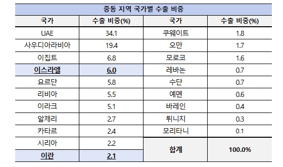| ▲ 중동 지역 국가별 수출 비중 (‘25년 기준) |