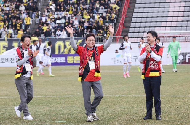 박완수 도지사는 경기 시작 전 직접 시축자로 나서 개막을 선언하며 “추운 날씨에도 경남FC를 향한 변함없는 애정으로 경기장을 가득 메워주신 도민 여러분께 깊이 감사드린다”며 “올 시즌 경남FC가 도민들에게 승리의 기쁨과 감동을 선사할 수 있도록 아낌없이 지원하고 응원하겠다”고 메시지를 전했다.