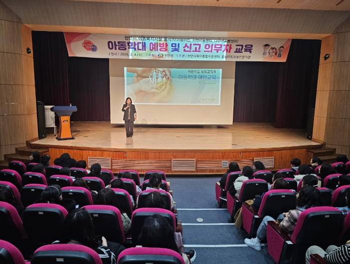 천안시는 4일 천안박물관 공연장에서 어린이집, 지역아동센터, 다함께돌봄센터 종사자들이 참석한 가운데 ‘아동학대 예방 및 신고의무자 교육’을 실시했다.
