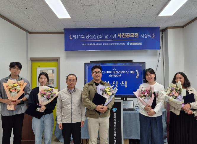 [뉴스노크=김인호 기자] 김제시는 10월 10일 정신건강의 날을 맞아 정신건강의 중요성에 대한 홍보 및 관심을 고취시키고 정신건강에 대한 인식개선을 도모하고자 제11회 정신건강 사진공모전“마음행복사진관:행복의 계절”을 개최하고 23일 시상식을 개최했다고 밝혔다.