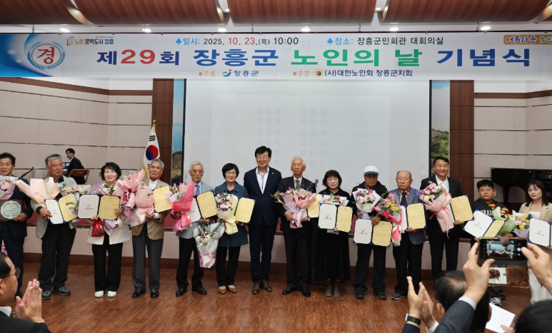 [뉴스노크=김인호 기자] 장흥군은 23일 오전 장흥군민회관에서 ‘제29회 노인의 날 기념식’을 개최했다고 전했다.