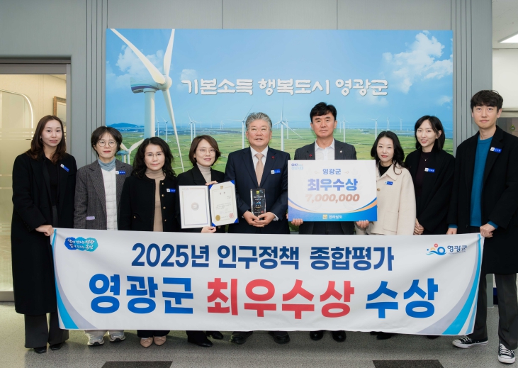 [뉴스노크=김인호 기자] 영광군은 2025년 전라남도가 주관한 「전라남도 인구정책 우수 시‧군 평가」에서 ‘최우수상’을 수상했다고 밝혔다.