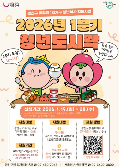 [뉴스노크=김인호 기자] 광진구(구청장 김경호)가 미취업 청년 1인가구의 간편한 식생활을 지원하기 위해 2026년 ‘청년도시락’ 지원 사업을 본격 추진한다.