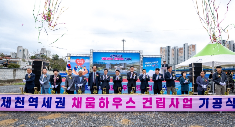 채움하우스 건립사업은 쇠퇴한 제천역 인근의 원도심 재생을 위해 2020년 9월 국토교통부 도시재생 뉴딜사업 공모에 선정된 이후, 충북개발공사와 위·수탁 협약 체결(2020년 11월), 건축기획 심의(2021년 5월), 설계공모 및 실시설계 착수(2021년 12월) 등 행정절차를 거쳐 추진되어 왔다. 이어 2023년 9월 공공주택건설 사업계획 승인, 2024년 7월 국토부 활성화계획 변경승인, 2025년 1월 사업계획 변경승인을 마치고 금년 10월 드디어 공사에 착공하게 됐다.
