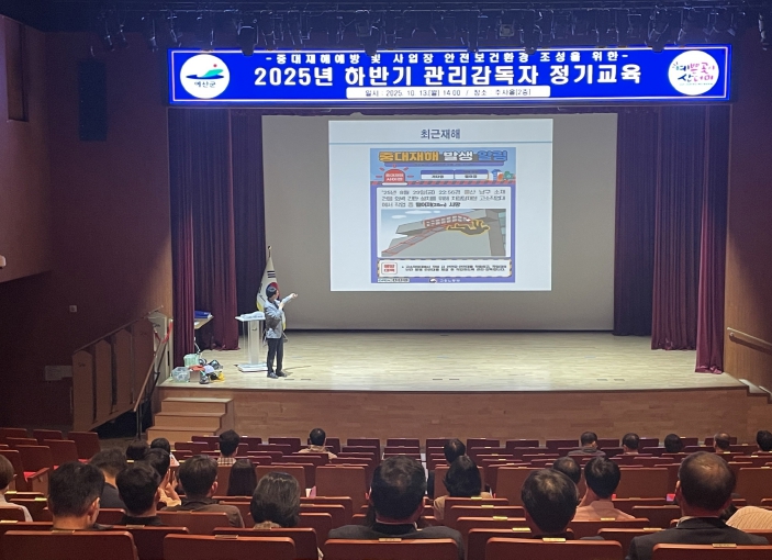 [뉴스노크=김인호 기자] 예산군은 지난 13일 군청 추사홀에서 중대재해 예방과 안전한 근로환경 조성을 위해 ‘2025년 하반기 관리감독자 집체교육’을 실시했다고 밝혔다.