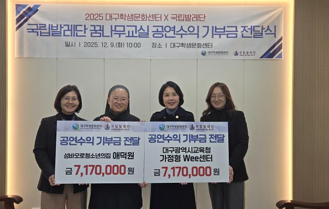 | ▲ 대구학생문화센터, (재)국립발레단과 함께한 공연 수익금 1,434만 원 전액 기부 |