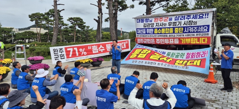 또한 최근 여론조사 결과를 구체적으로 제시하며, 완주군민의 다수가 통합에 반대 입장을 보이고 있음을 재차 확인했다.