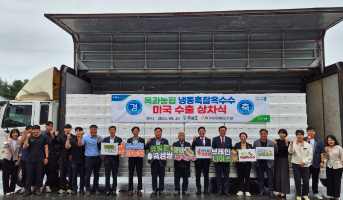 [뉴스노크=김인호 기자] 곡성군이 지난 25일 옥과농협 농산물유통센터(APC)에서 미국으로 수출하는 흑찰옥수수의 첫 상차식을 개최했다.