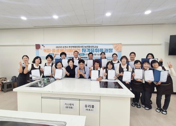 [뉴스노크=김인호 기자] 순천시는 농촌 주민들의 역량을 강화하고 소득 창출을 위해 추진한 ‘커피음료 베리에이션 자격증 취득 과정’을 지난 23일 마무리했다고 밝혔다.