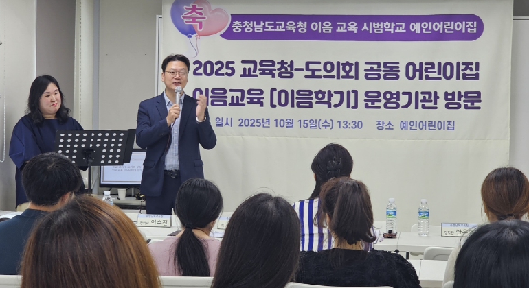 [뉴스노크=김인호 기자] 충남교육청은 15일, 충청남도의회 신한철 의원과 함께 천안시 예인어린이집을 대상으로 어린이집 이음교육(이음학기) 운영 현장을 방문했다.