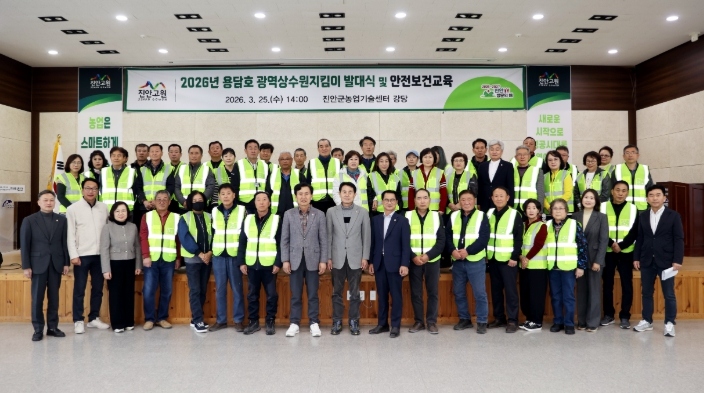 [뉴스노크=김인호 기자] 진안군은 25일 농업기술센터 강당에서 2026년도 용담호 광역상수원 지킴이 발대식을 개최하고, 본격적인 수질보전 활동에 들어갔다.