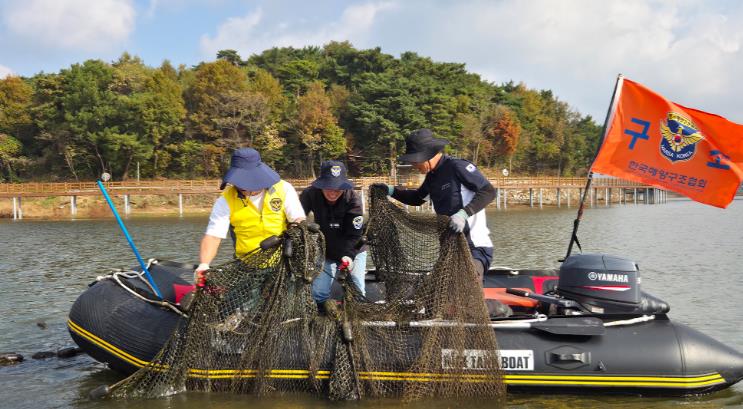 | ▲ (사)한국해양구조협회 서산본부, 서산시 풍전저수지 일대 환경정화활동 펼쳐 |