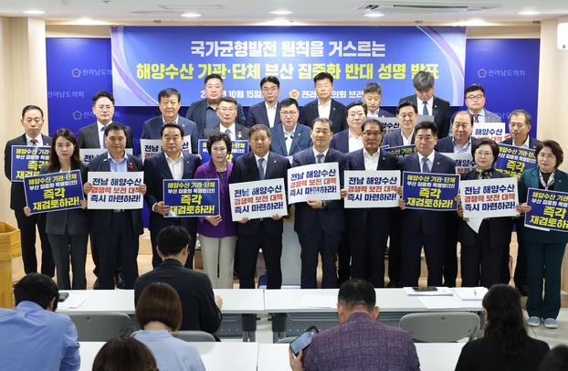 [뉴스노크=김인호 기자] 전라남도의회 농수산위원회 최동익 의원(더불어민주당·여수)은 10월 15일 제394회 임시회 도의회 브리핑룸에서 '국가균형발전 원칙을 거스르는 해양수산 기관·단체 부산 집중화 반대 성명서'를 발표했다.