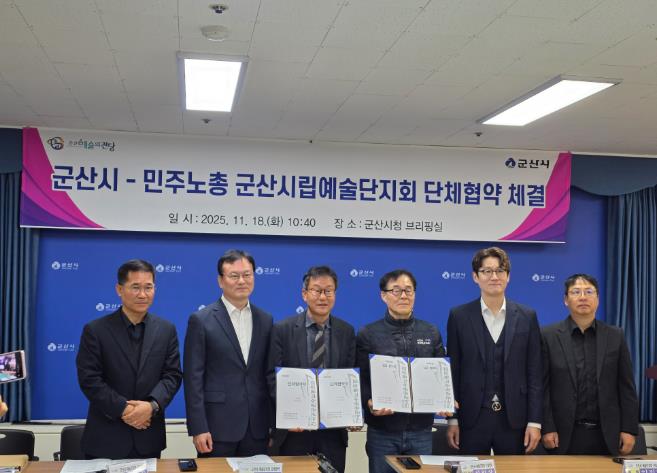 [뉴스노크=김인호 기자] 군산시와 민주노총 공공운수사회서비스노조 군산시립예술단지회가 시립예술단의 운영 안정화와 지속적인 발전을 위한 단체협약을 18일 체결했다고 밝혔다.