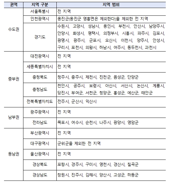 | ▲ 대기관리권역에 속하는 지역 현황표 |