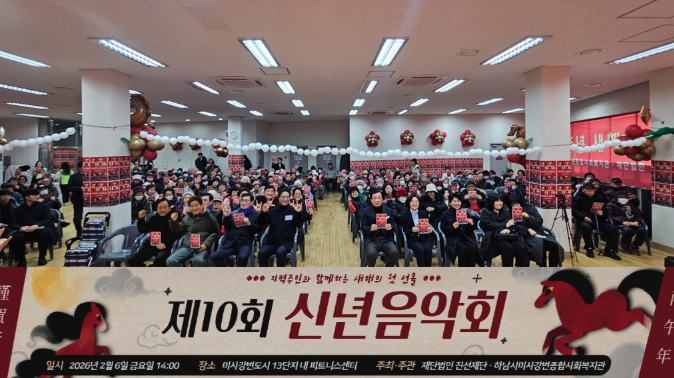 [뉴스노크=김인호 기자] 2026년 붉은 말의 해 병오년을 맞이하여 하남시미사강변종합사회복지관과 재단법인 진선재단은 지난 6일 ‘제10회 지역주민 신년음악회’를 공동 주최·주관하고, 300명 이상의 지역주민이 참석한 가운데 새해의 힘찬 시작을 알렸다.