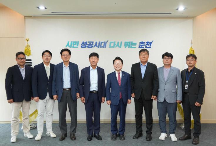 ▲ 대한테니스협회와 데이비스컵 논의(2)_육동한 시장 왼쪽 양종수 대한테니스협회 부회장, 오른쪽 이강균 춘천시체육회장). |