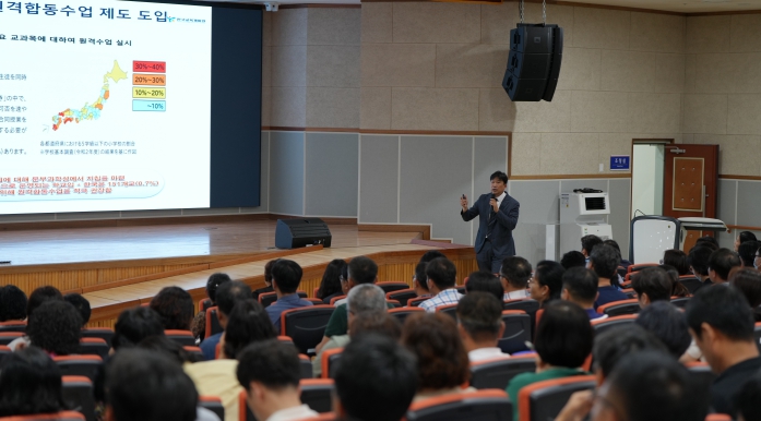 첫날인 14일 전라남도교육연구정보원에서는 ‘작은학교 리더그룹 연찬회’가 진행됐다. 한국교육개발원 권순형 박사가 ‘학령인구 감소에 대응하는 교육정책 방향’을, 일본 규슈대학교 모토카네 마사히로 교수가 ‘작은학교를 혁신하는 스쿨리더의 역할’ 특강을 했다. 두 전문가는 한일 소규모학교 정책 비교 연구를 통해 전남형 작은학교 방향과 과제를 이야기하고 작은학교 관리자의 역할과 중요성을 강조했다.