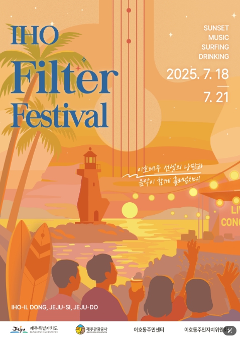 제주 여름밤의 정취를 즐길 수 있는 대표 야간 프로그램 ‘이호 필터 페스티벌’이 7월 18일부터 21일까지 힐링콘서트와 곳곳에서 버스킹 공연 등이 이호테우해수욕장에서 열린다. 같은 장소에서는 7월 19~20일 ‘제술페(제주한잔 우리술 페스티벌)’가 함께 열려, 지역 로컬주와 젊은 감성을 결합한 해변형 야간축제로 관람객을 맞이할 예정이다.