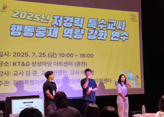 [뉴스노크=김인호 기자] 강원특별자치도교육청은 7월 25일 10시 춘천 KT&G 상상마당 아트센터에서 ‘2025 저경력 특수교사 행동중재 역량 강화’ 연수를 진행했다.