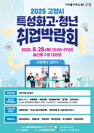[뉴스노크=김인호 기자] 고양특례시는 오는 8월 28일 일산동구청에서 개최되는‘2025 고양시 특성화고-청년 취업박람회’에 참여할 기업을 8월 8일까지 모집한다고 밝혔다.