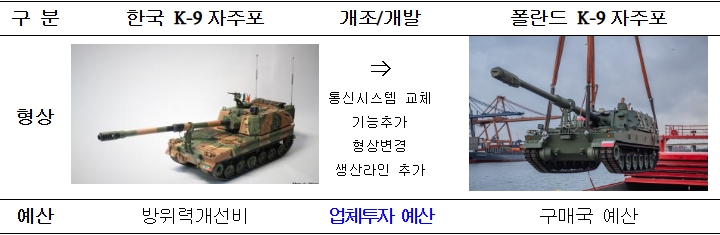▲ K-9 자주포의 폴란드 수출 예시(개조·개발 사례) |