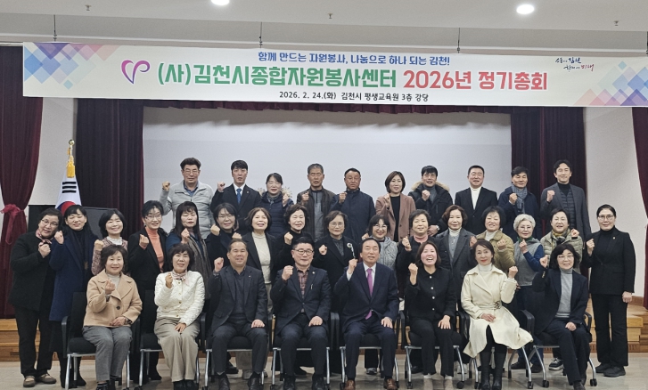 [뉴스노크=김인호 기자] (사)김천시종합자원봉사센터는 지난 24일, 김천시평생교육원 3층 강당에서 2026년 정기총회를 개최했다.