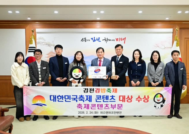 [뉴스노크=김인호 기자] 김천시는 지난 2월 24일 서울 용산 피스앤파크 컨벤션에서 열린 ‘제14회 대한민국 축제콘텐츠 대상’에서 축제콘텐츠 부문 대상을 수상했다.