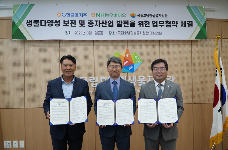 [뉴스노크=김인호 기자] 환경부 산하 국립호남권생물자원관은 8월 1일, NH농협금융지주, NH농우바이오와 함께 생물다양성 보전과 종자산업 발전을 위한 3자 업무협약(MOU)을 체결했다고 밝혔다.