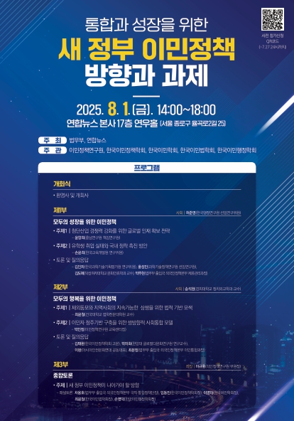 법무부와 연합뉴스가 공동으로 주최하고, 이민정책연구원 및 이민정책 관련 4대 학회(한국이민정책학회‧한국이민학회‧한국이민법학회‧한국이민행정학회)가 공동으로 주관한 이번 포럼은 인구 구조 변화, 지역 소멸, 글로벌 인재 경쟁 등 급변하는 환경 속에서 새 정부의 전략적 이민정책 방향성을 설정하기 위해 마련됐다.