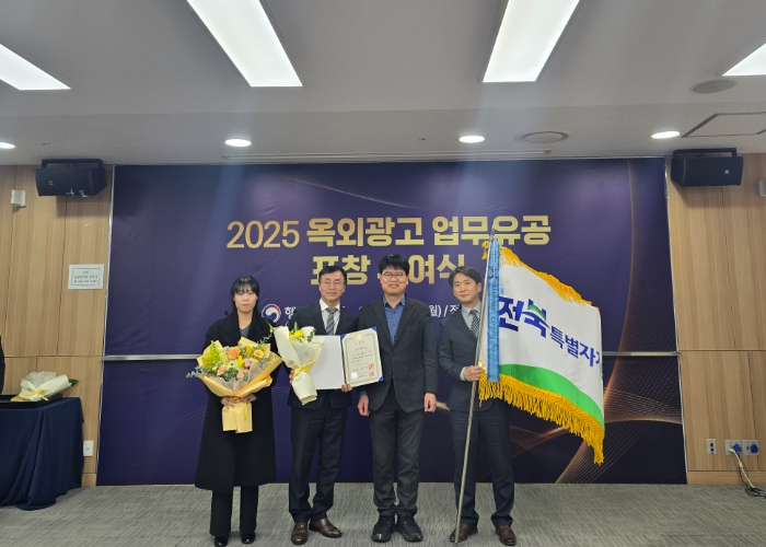 [뉴스노크=김인호 기자] 전북특별자치도가 행정안전부가 주관한 ‘2025년 옥외광고 정책 평가’에서 전국 광역자치단체 가운데 최고 등급인 ‘국무총리 표창’을 수상했다고 29일 밝혔다.
