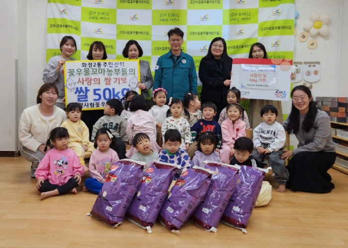[뉴스노크=김인호 기자] 고양특례시 덕양구 화정2동은 지난 18일 고양시립꽃우물어린이집에서 어려운 이웃을 돕기 위해 쌀 50kg(10kg 5포)을 화정2동 행정복지센터에 기부했다고 밝혔다.