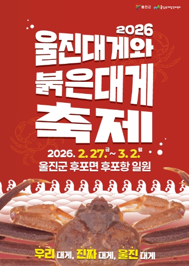 [뉴스노크=김인호 기자] 임금님의 수랏상에도 올랐다는 명품 음식을 저렴하고 푸짐하게 먹을 수 있는 곳이 있다. 겨울의 끝자락인 2월, 살이 통통하게 오른 대게와 붉은 대게의 참맛을 즐길 수 있는‘2026 울진대게와 붉은대게축제’가 울진 후포항 일원에서 개최된다.