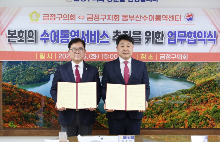 한편, 이날 협약식은 개회 및 참석자 소개를 시작으로 양 기관 대표 인사말씀, 업무협약 체결 및 기념촬영 순으로 진행됐다. 금정구의회는 향후 본회의 실시간 송출과 의회 홈페이지 영상 게재를 통해 수어통역 방송을 함께 제공할 예정이다.