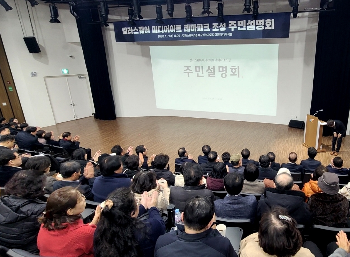 [뉴스노크=김인호 기자] 대구 수성구는 7일 칼라스퀘어(대구스타디움몰) 내 시청자미디어센터 다목적홀에서 ‘칼라스퀘어 미디어아트 테마파크 조성 주민설명회’를 개최했다.