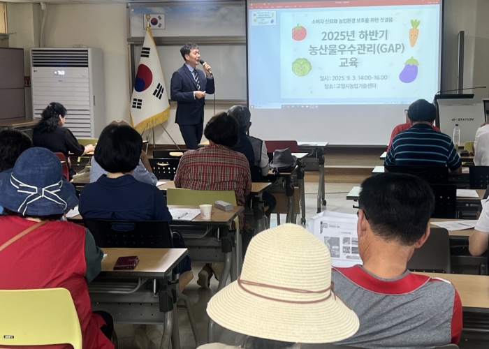 [뉴스노크=김인호 기자] 고양특례시는 지난 3일 농업기술센터에서 관내 농업인 46명이 참석한 가운데 ‘2025년 하반기 농산물우수관리(GAP) 기본교육’을 진행했다.