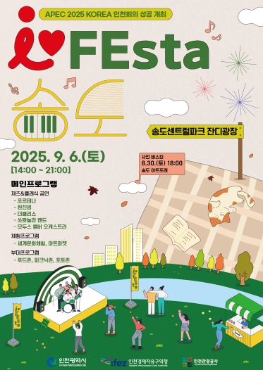 [뉴스노크=김인호 기자] 인천경제자유구역청(청장 윤원석)이 주최하고 인천관광공사(사장 백현)가 주관하는‘2025 I♥FEsta 송도’가 오는 6일 오후 2시부터 밤 9시까지 송도 센트럴파크 잔디광장 일원에서 열린다.