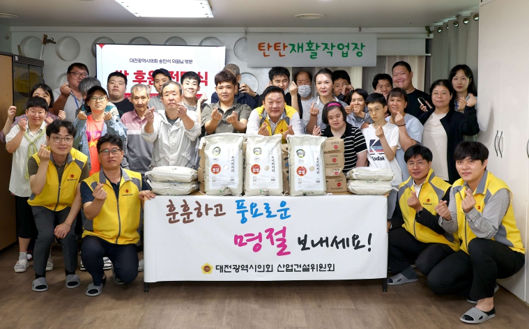 [뉴스노크=김인호 기자] 대전시의회 송인석 산업건설위원장(국민의힘, 동구1)은 추석 명절을 앞둔 25일 동구 소재 장애인 재활시설 탄탄재활작업장(원장 이미정)을 방문해 위문품을 전달했다.