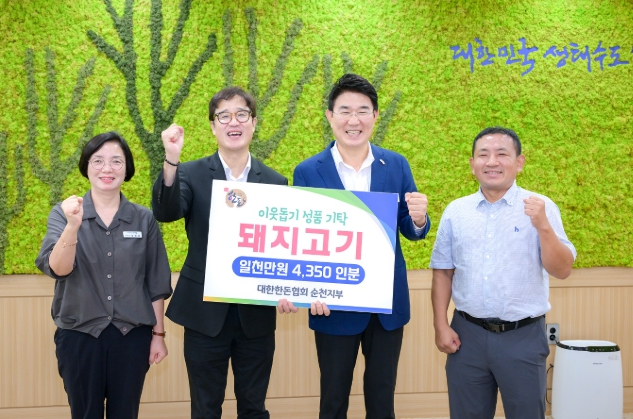 [뉴스노크=김인호 기자] 순천시는 25일 순천시청에서 (사)대한한돈협회 순천지부(지부장 김선일)와 일천만원 상당의 돼지고기 435박스(870kg) 전달식을 가졌다고 밝혔다.