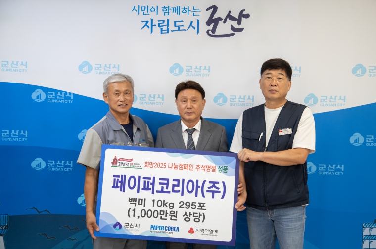 [뉴스노크=김인호 기자] 군산시는 페이퍼코리아㈜(대표이사 권육상)가 다가오는 추석, 어려운 이웃을 위해 백미10㎏ 295포(1천만 원 상당)를 기탁했다고 25일 밝혔다.