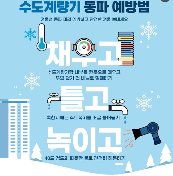 아울러 경남도는 남은 겨울 동안 기온 급강하에 대비해 수도계량기와 수도관 보온 조치를 재차 안내하고, 도민들이 쉽게 실천할 수 있는 동파 예방요령 홍보를 확대할 계획이다.