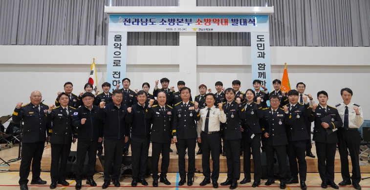 [뉴스노크=김인호 기자] 전라남도소방본부(본부장 최민철)가 2월 25일 장흥소방서 대강당에서 ‘전남소방악대’ 발대식을 갖고, 음악을 통한 도민 안전 문화 확산과 소통 행보를 본격화했다.