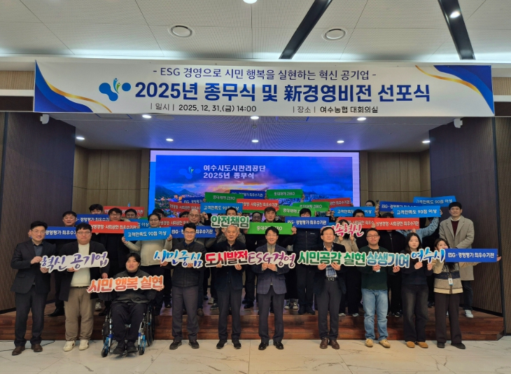 [뉴스노크=김인호 기자] 여수시도시관리공단은 31일 공단 대회의실에서 ‘新 경영비전 선포식’을 개최하고, 향후 5년간 공단이 나아갈 새로운 경영 철학과 조직 혁신 의지를 대내외에 공식적으로 밝혔다.
