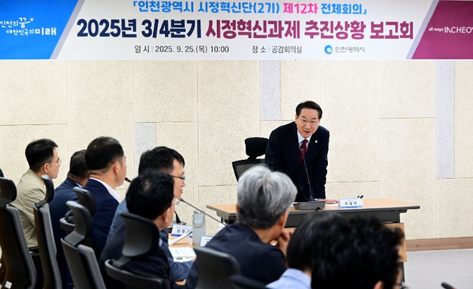 [뉴스노크=김인호 기자] 인천광역시는 9월 25일 시청 공감회의실에서 ‘2025년 3/4분기 시정혁신과제 추진상황 보고회’를 개최했다고 밝혔다.